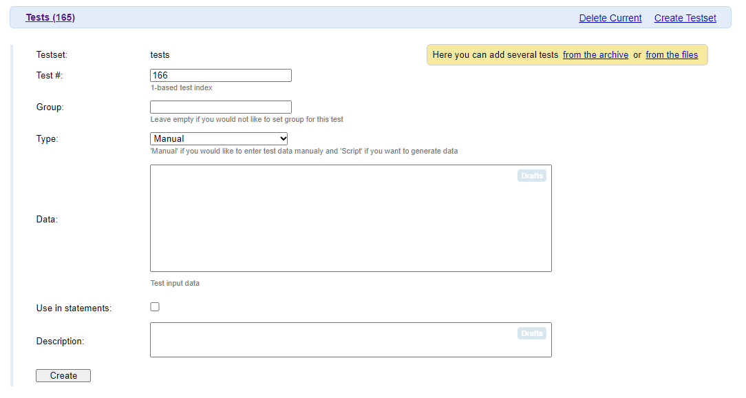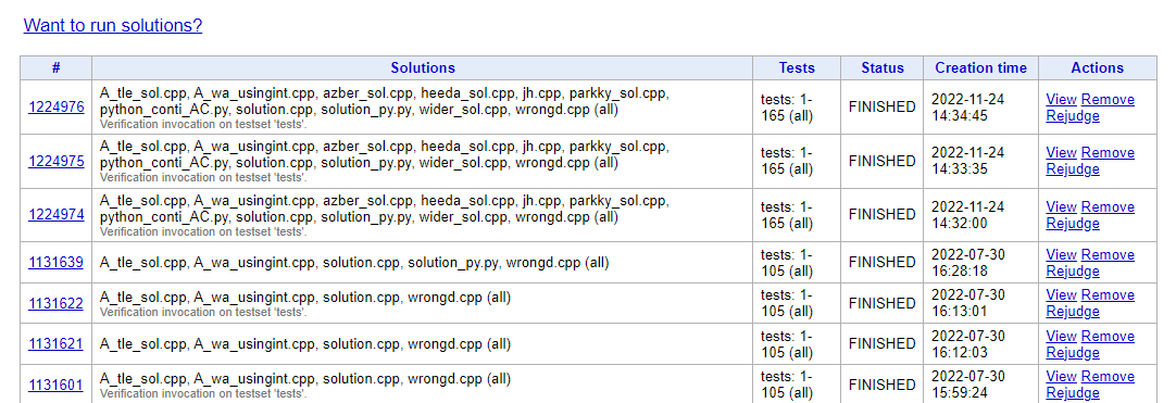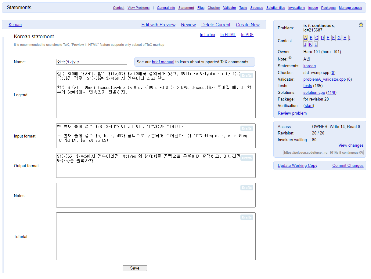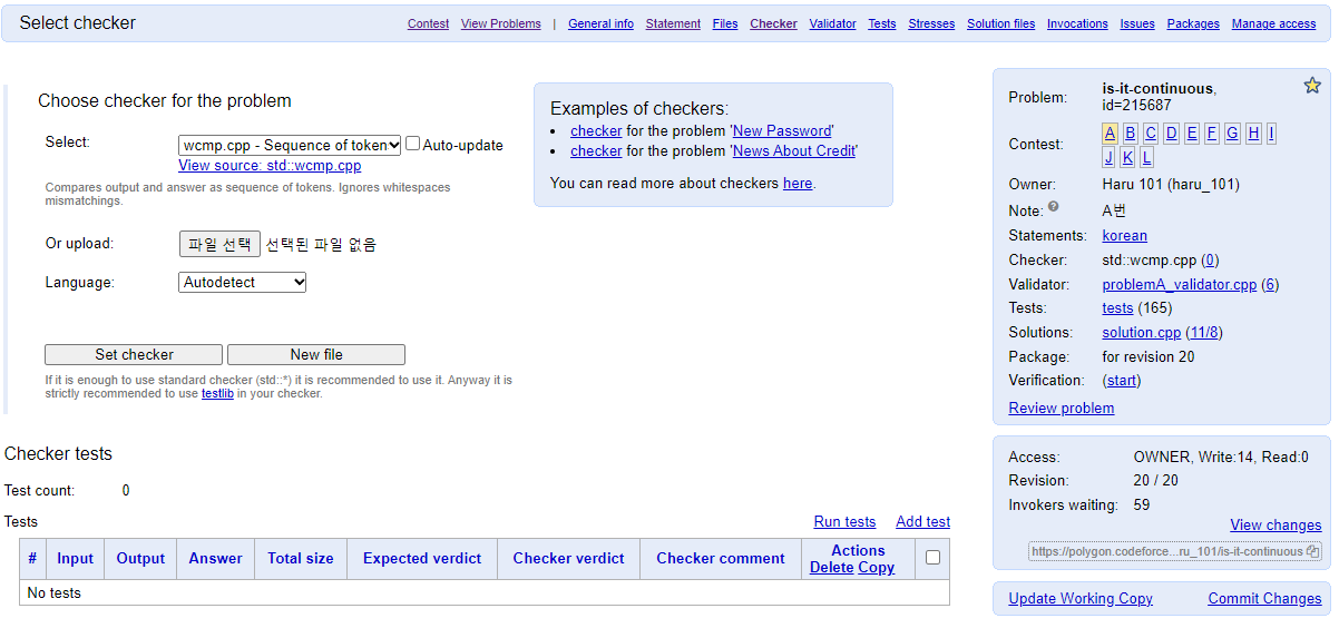 출제는 "polygon" (https://polygon.codeforces.com/) 을 이용하여 출제하는 것이 좋습니다.